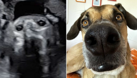 De echo liet het gezichtje van de baby zien met schaduwen die precies leken op de neus en ogen van Goulash. De arts verzekerde haar dat alles goed ging met de baby, maar moest zelf ook even meegenieten van het moment.