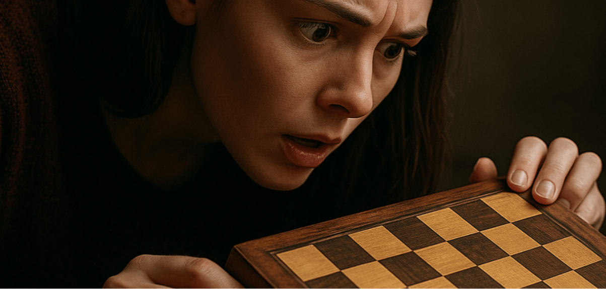 Het laatste figuurtje — een massieve, met de hand gesneden houten dame — voelde zwaarder dan de rest, alsof het zijn geheim bijna uit zichzelf wilde verraden.