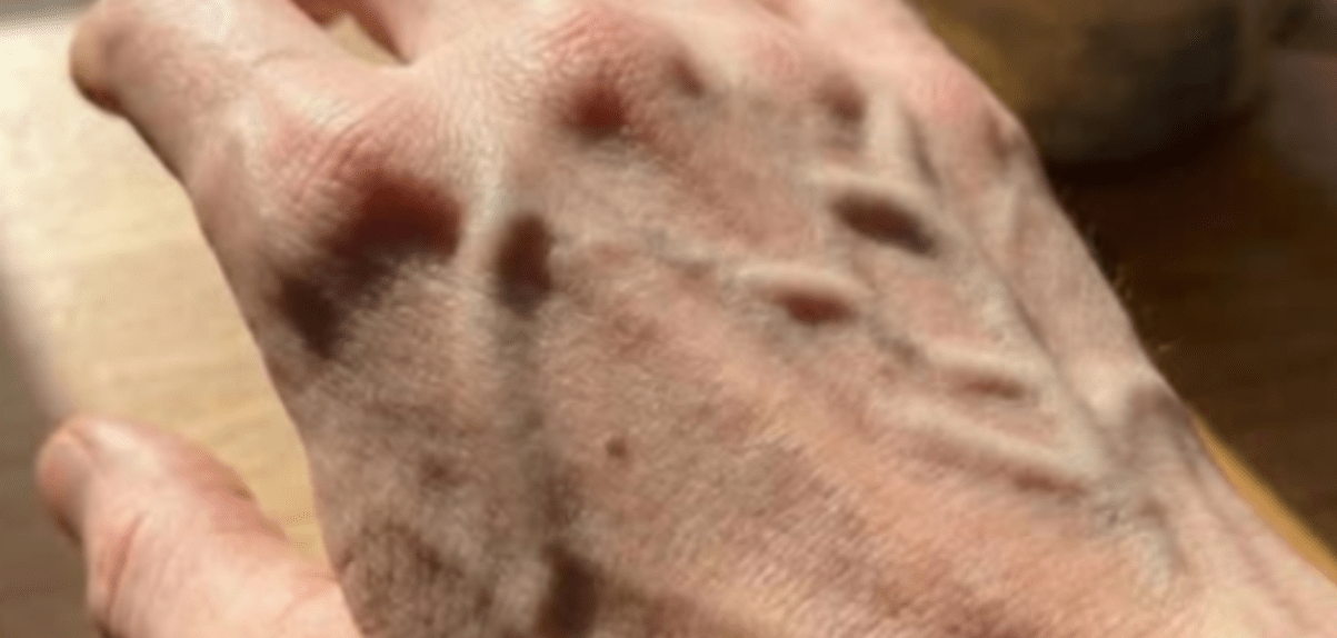 Vooral op handen en armen valt dit op.