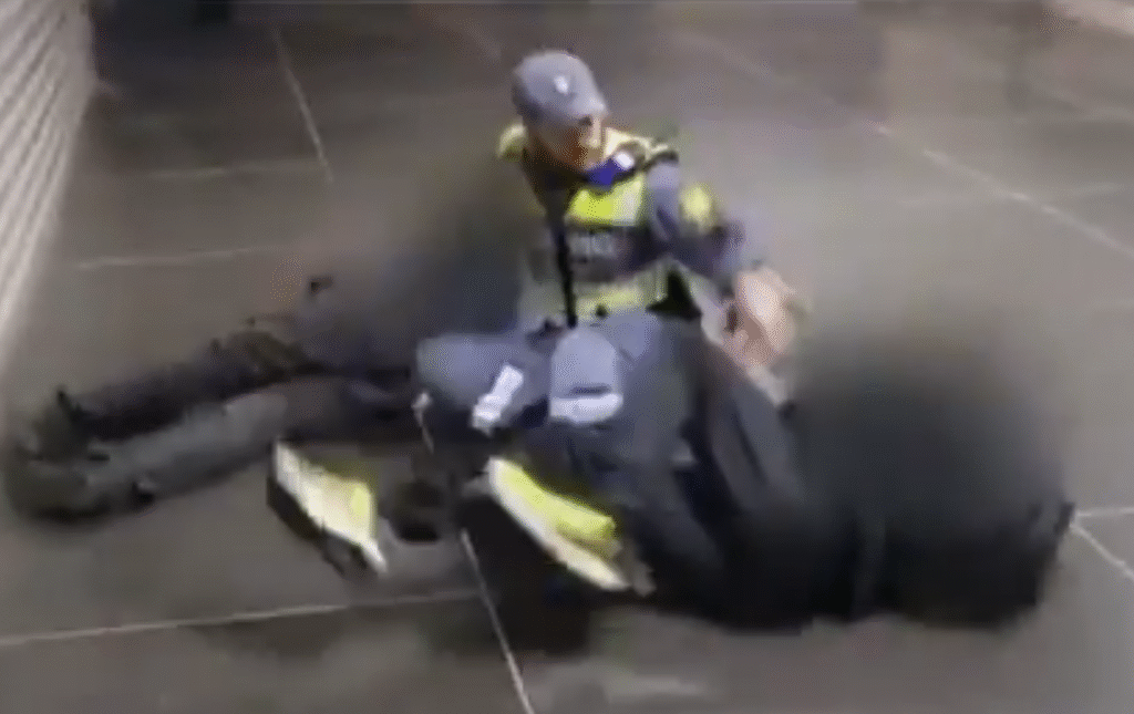 Wat er precies voorafging aan het moment is niet te zien. De opname begint midden in de gebeurtenis.