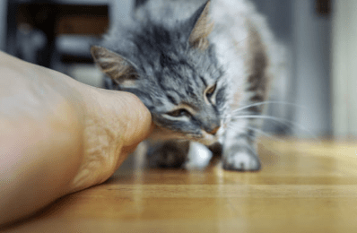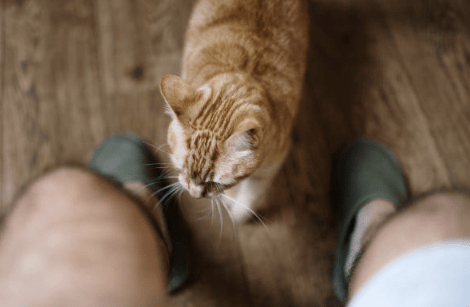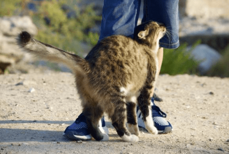 Vaak begint het met een kleine kopstoot. Daarna loopt de kat met zijn flank langs iemand heen. Sommige katten maken zelfs een klein rondje om de benen van hun eigenaar.