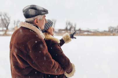 De man trilde zichtbaar van de kou, zijn handen stijf en verkrampt, terwijl de vrouw haar vingers tegen elkaar drukte alsof ze zo nog een laatste restje warmte en controle kon vasthouden.