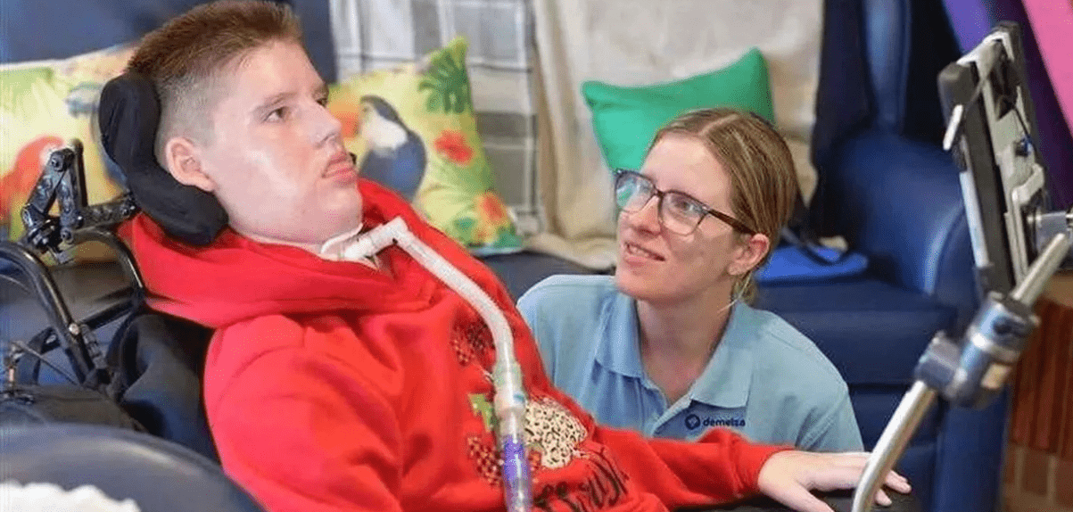 Ook kwamen regelmatig gespecialiseerde zorgverleners langs om te helpen met aanpassingen in huis, oefeningen en routines die houvast geven. Jude werkte ondertussen via digitale hulpmiddelen aan zijn schoolwerk en gebruikte een oogbesturingssysteem om te communiceren, zodat hij toch kon aangeven wat hij dacht en voelde.