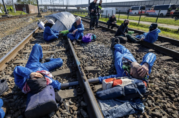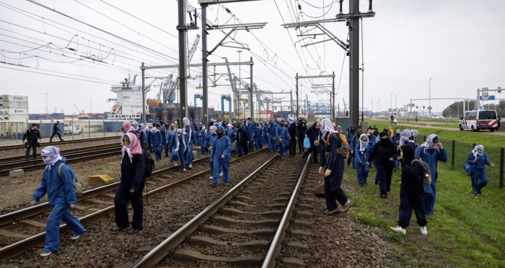 Toen de groep zich over de spoorlijnen verspreidde, besloot de politie de situatie zorgvuldig te begeleiden om de veiligheid te waarborgen.