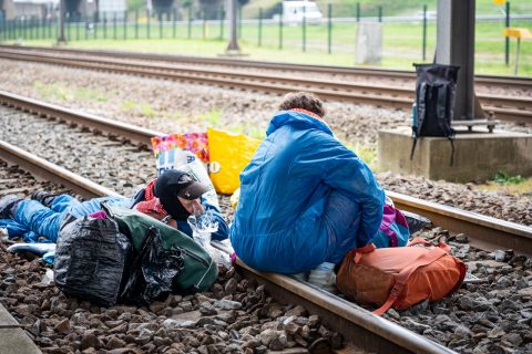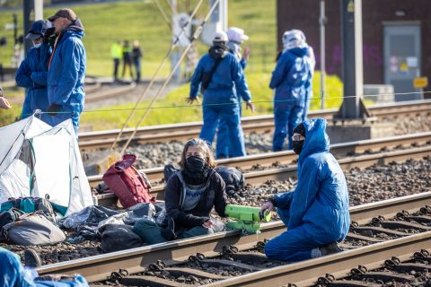 Agenten vroegen de deelnemers rustig om een stapje terug te doen, zodat het treinverkeer ongehinderd kon doorgaan. De communicatie verliep vriendelijk en respectvol.