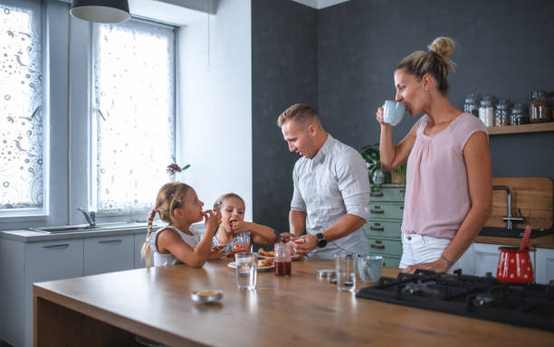 Elke ochtend bereidt moeder met aandacht en liefde een voedzaam ontbijt voor haar dochters, zodat ze de dag vol energie en concentratie kunnen beginnen en met een glimlach naar school vertrekken.