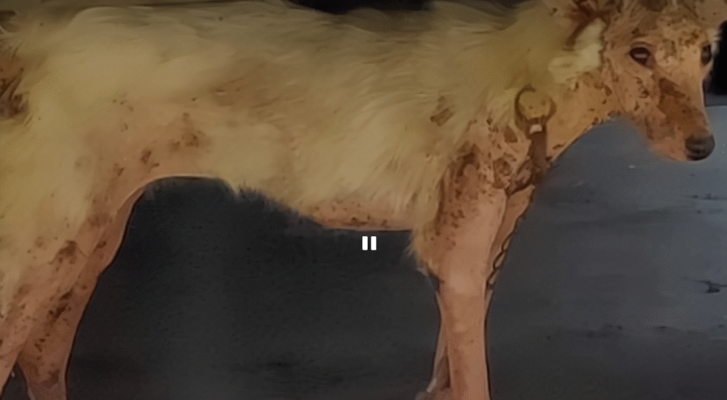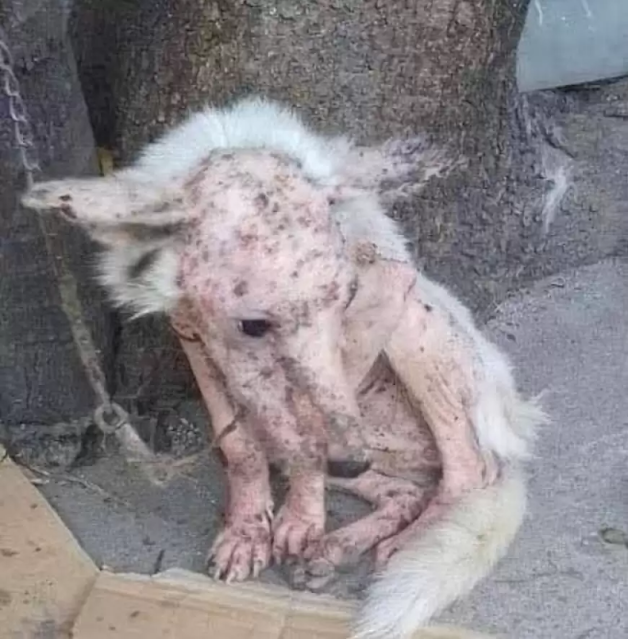 De magere, uitgeputte hond keek ons hoopvol aan met grote, zachte ogen. Ondanks haar kale vacht en zichtbare botten straalde ze warme vriendelijkheid uit, waardoor we beseften dat zelfs in kwetsbare toestand schoonheid te vinden is in de wereld.
