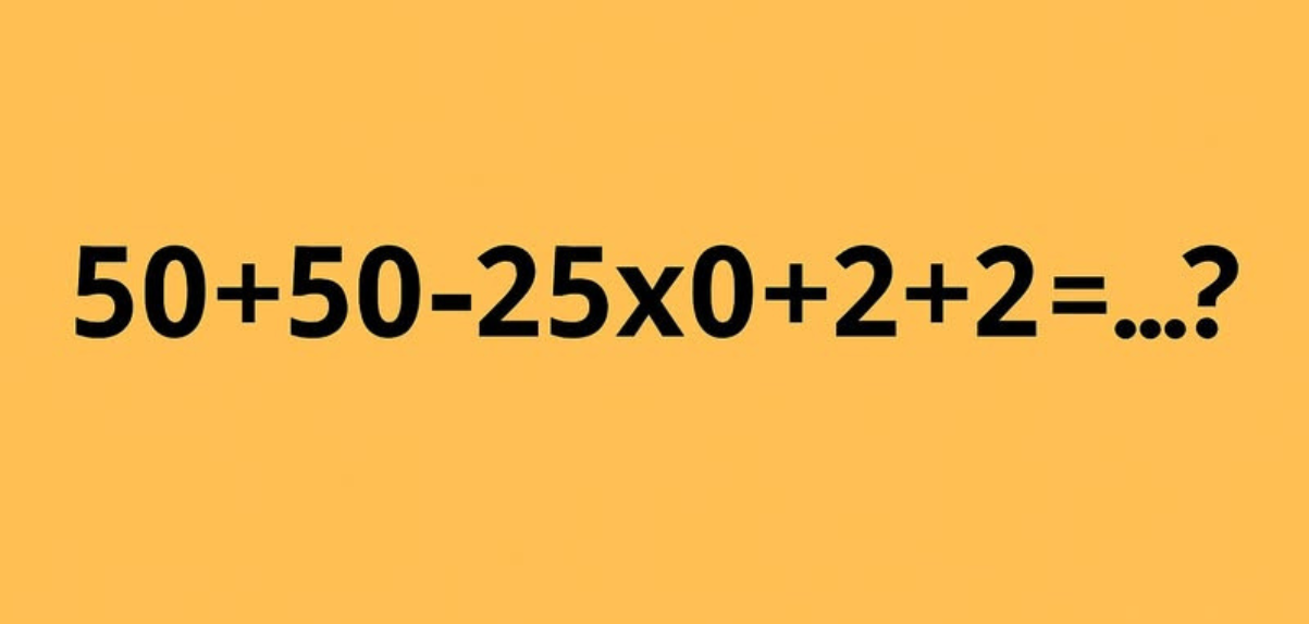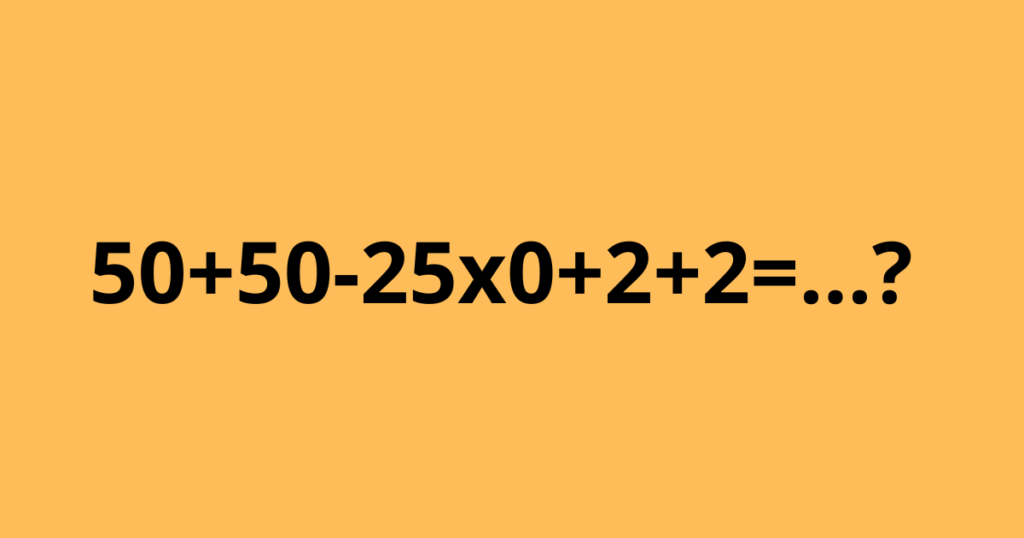 50 + 50 – 25 × 0 + 2 + 2 = ?