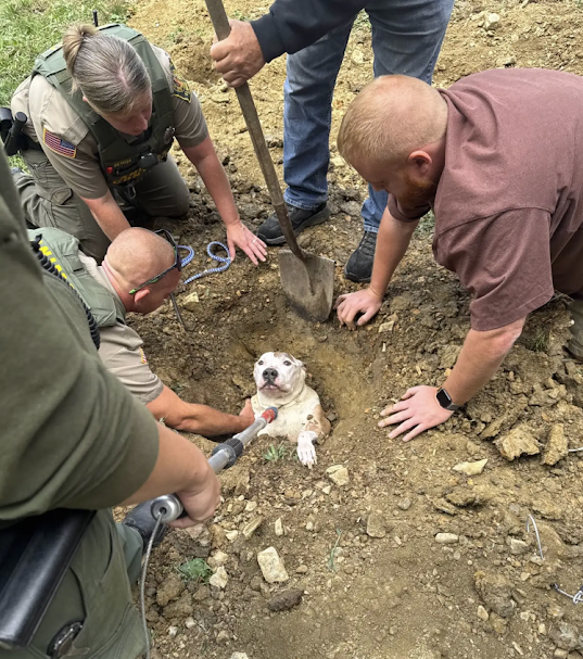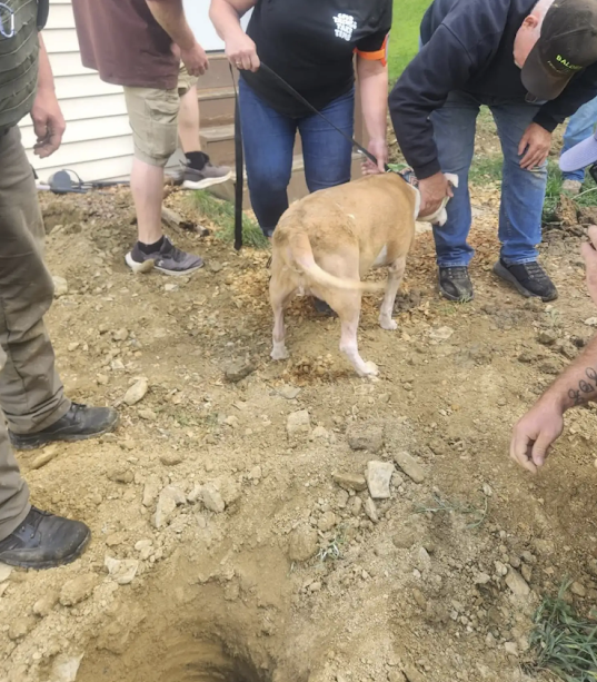 Met gezamenlijke inspanning en uiterste zorgvuldigheid werd Bruiser langzaam uit de kuil getild. Elke stap van de redding werd nauwkeurig gepland om zijn veiligheid volledig te garanderen.