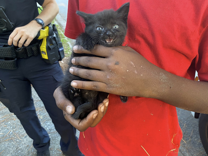 - Twee jongens ontdekten een kitten vast in een regenpijp in Savannah.