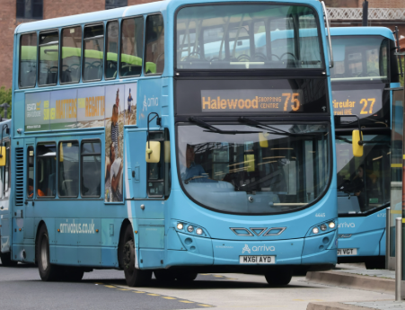 A modern city bus in motion