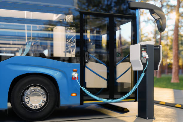 Clean Energy Concept. Close-up Of Charging Electric Bus At Charging Station