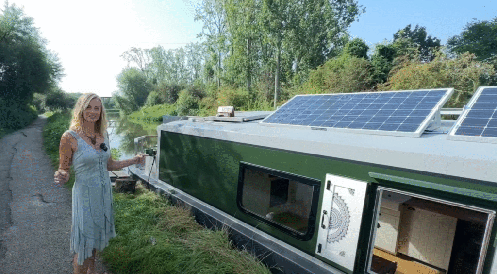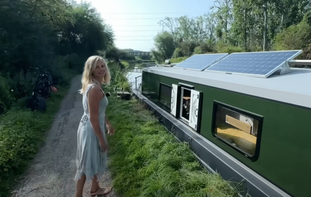 - Ze reist met haar boot door Engeland en leeft grotendeels zelfvoorzienend dankzij zonnepanelen, een regenwatersysteem en haar eigen vakmanschap.