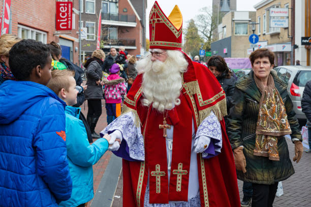 Zaltbommel, the Netherlands – November 16, 2013: The arrival of Sinterklaas in the city of Zaltbommel. Sinterklaas and Zwarte Pieten walking in the streets of Zaltbommel. On the picture Sinterklaas has just arrived by boat from Spain, together with his helpers called Black Petes. Sinterklaas is a winter holiday figure, it’s believed that Sinterklaas brings children presents in the evening of the fifth of December. The arrival of Sinterklaas is always somewhere mid november and also celebrated in many places throughout the country.
