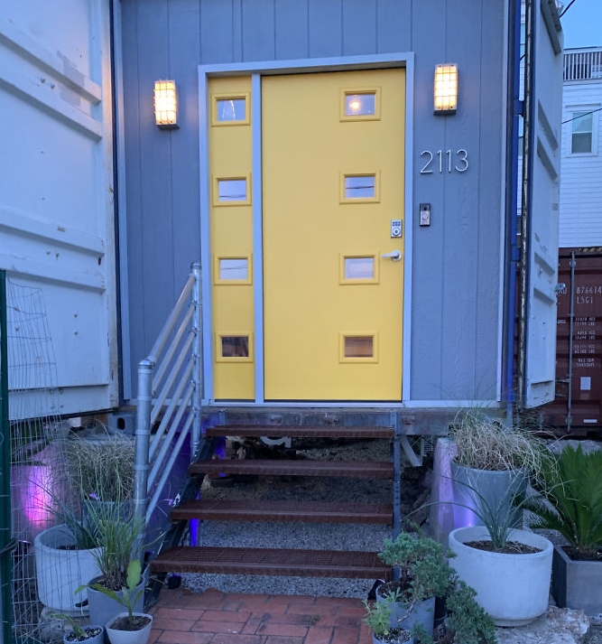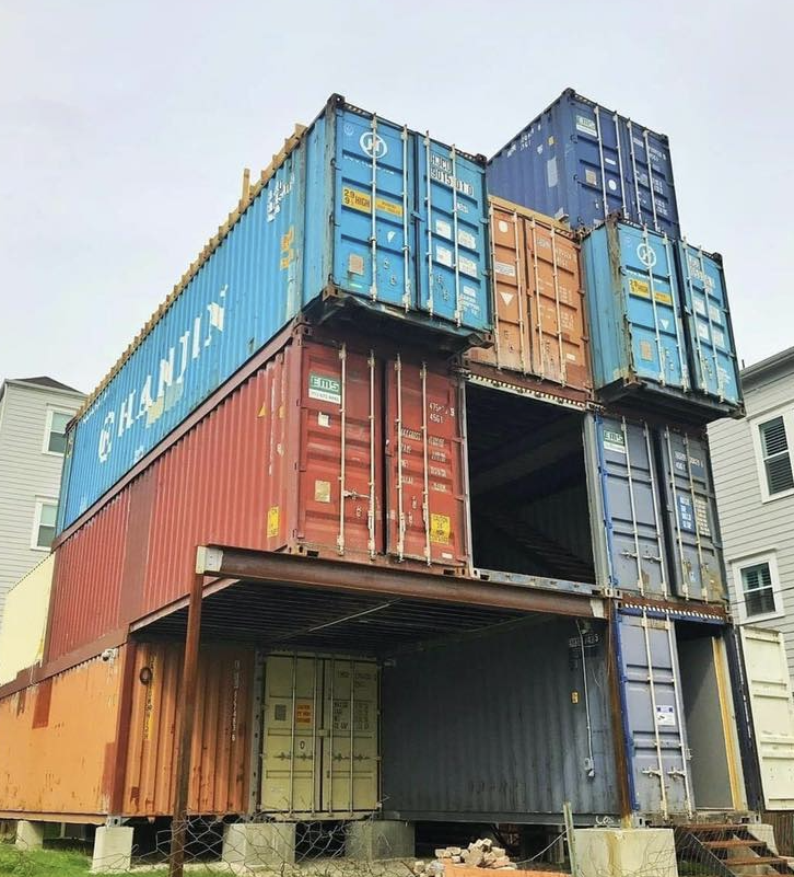 De containers kwamen uit de haven van Galveston en werden zorgvuldig gereinigd en aangepast om bewoonbaar te worden.