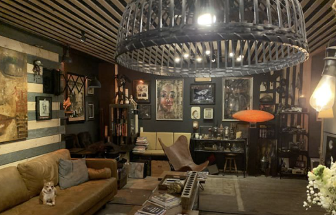 Veel van de meubels zijn vervaardigd uit gerecycled hout en oude bouwmaterialen.