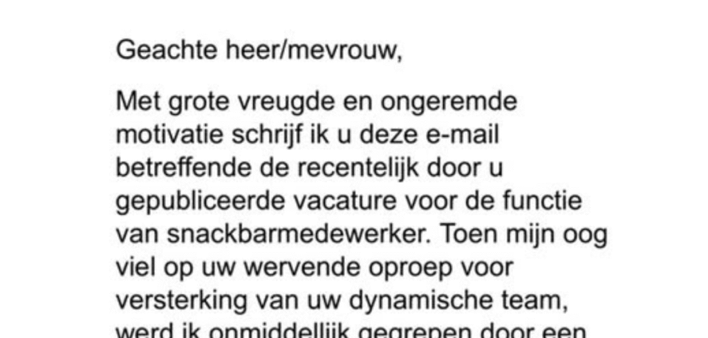 Iedereen lacht: Sjors (17) schrijft de meest bizarre sollicitatiebrief ooitDoor SPECTRUM - Hoofdredactie / 01/28/2026 Iedereen lacht: Sjors (17) schrijft de meest bizarre sollicitatiebrief ooit Lees nu 💡