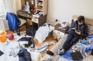 Overal lagen lege snackzakjes, slordig neergegooide sokken, halfvolle glazen en allerlei vreemde troep die niemand kon thuisbrengen, alsof iemand bewust een spoor van wanorde achterliet.