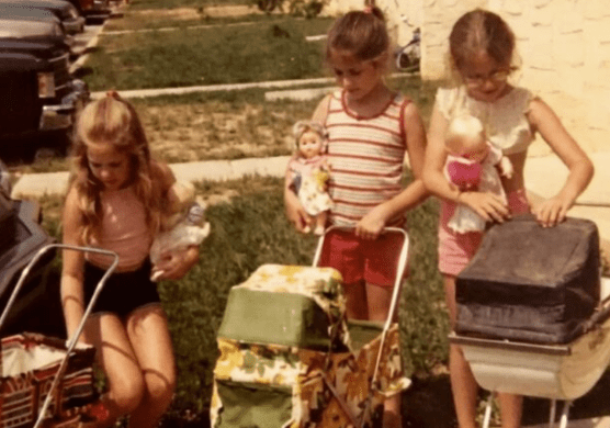 Een oude foto van spelende kinderen zorgt online voor veel reacties. Op het eerste gezicht lijkt er niets bijzonders aan de hand. Het beeld toont een rustige straat waar drie kinderen met poppenwagens wandelen in het warme zonlicht.