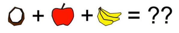 Elke rij van de puzzel toont een combinatie van fruit en mathematische symbolen, wat aangeeft dat er een som moet worden opgelost.