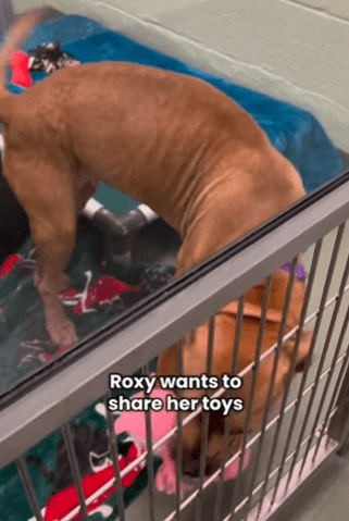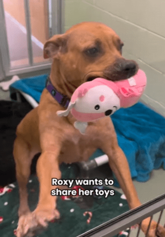 In een dierenasiel in West Palm Beach, Florida, zat een hond die lange tijd weinig aandacht kreeg. Terwijl andere honden sneller werden bekeken, bleef Roxy vaak rustig in haar kennel zitten.
