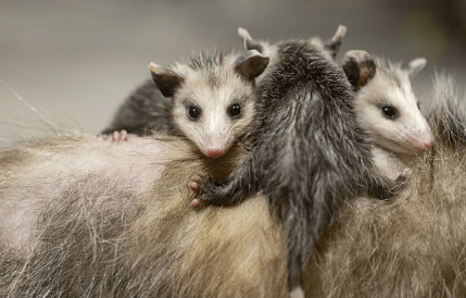 Opossums hebben een draagtijd van ongeveer twee weken. Daarna groeien de jongen verder in de buidel voordat ze op de rug van hun moeder reizen.