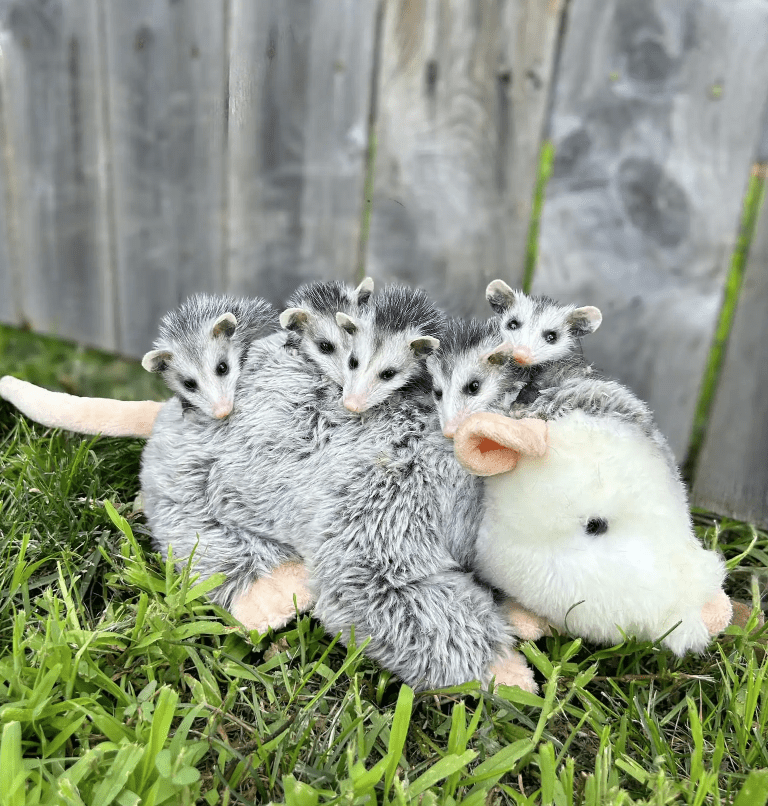 In het wild reizen jonge opossums vaak op de rug van hun moeder. De pluche opossum bood een vergelijkbare structuur.