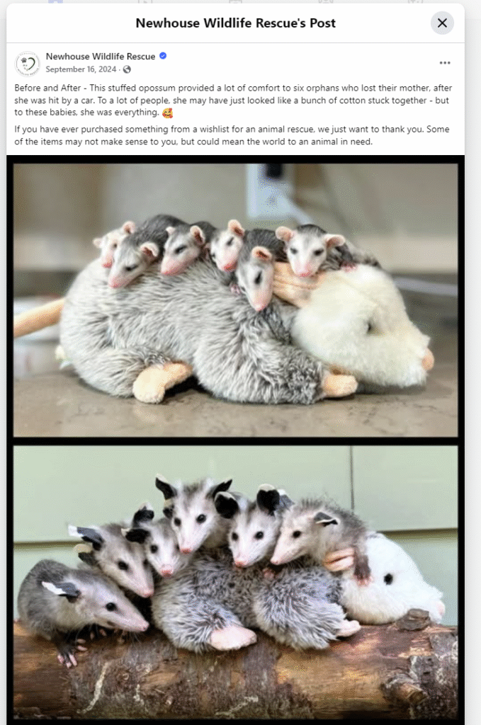 - Medewerkers van Newhouse Wildlife Rescue ontdekten jonge opossums tijdens een melding.