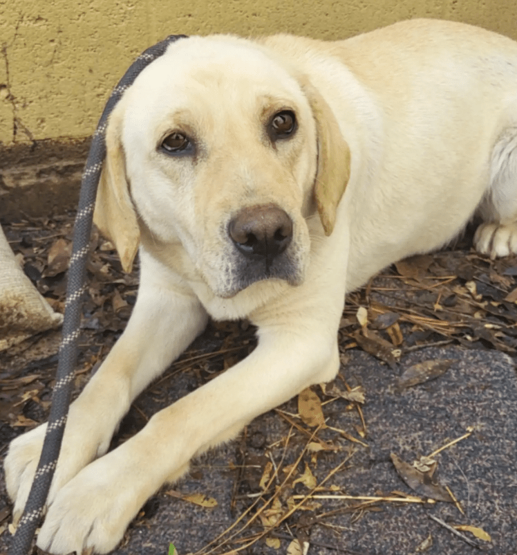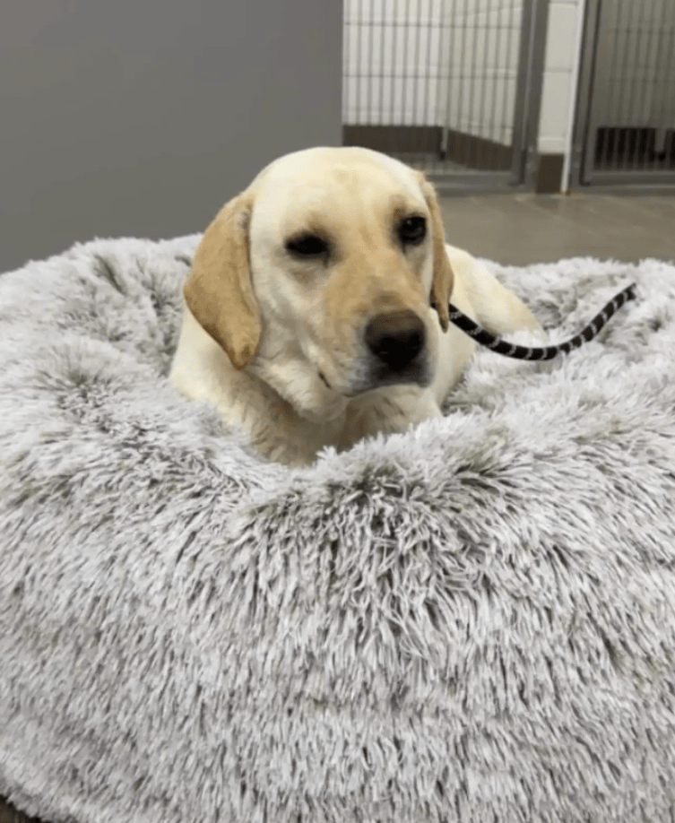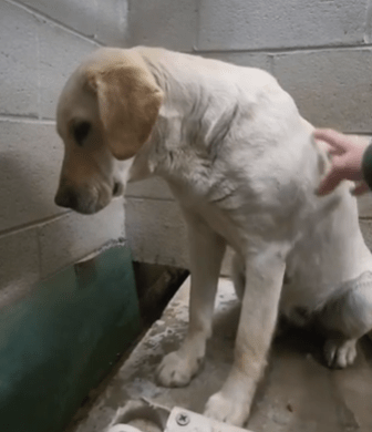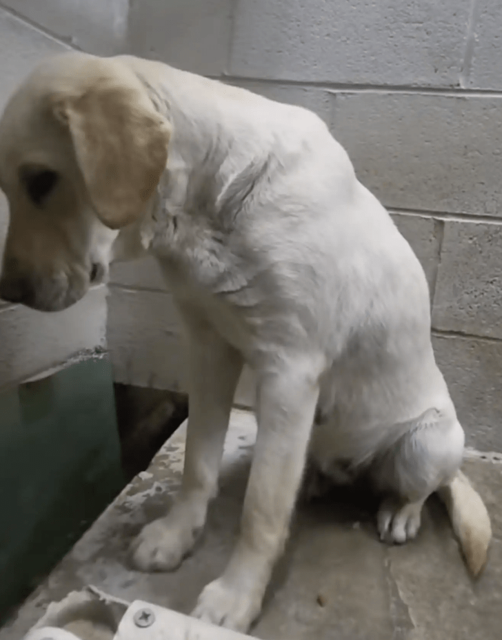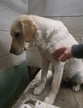 In een klein en ondergefinancierd asiel in South Carolina zat de hond Goldie dagenlang stil in haar kennel. Ze keek vooral naar de betonnen muur voor zich uit en maakte een teruggetrokken indruk. Medewerkers zagen dat ze weinig contact zocht met mensen die langs haar verblijf liepen.
