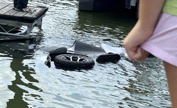 Het voertuig kwam uiteindelijk deels in het water terecht. Bezoekers in de buurt zagen wat er gebeurde en riepen hulp in.