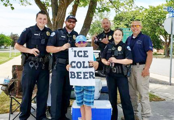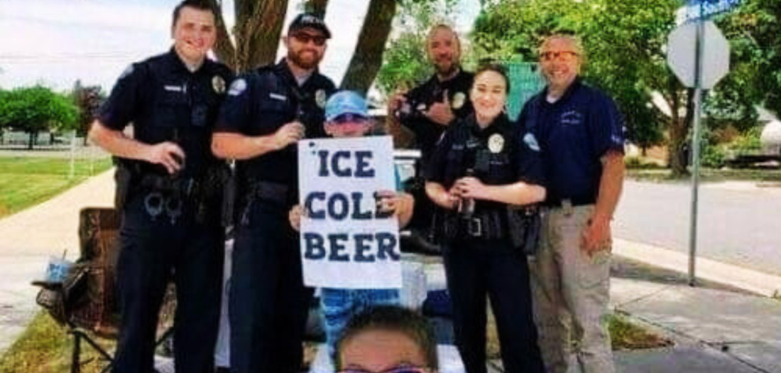 De politieagenten, die hadden kunnen ingrijpen en de jonge ondernemer een halt toe kunnen roepen, moesten in plaats daarvan lachen om de slimme vondst van de jongen.