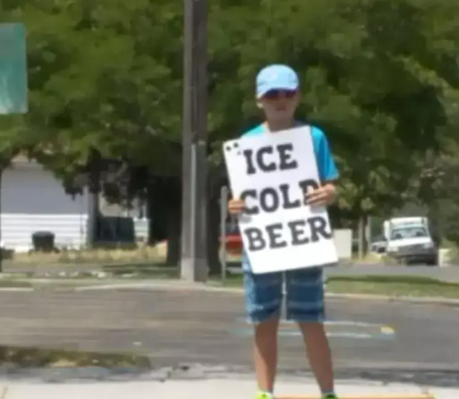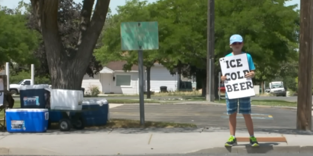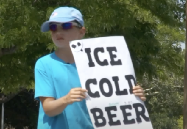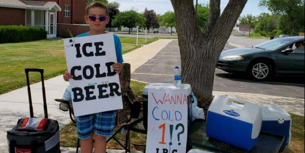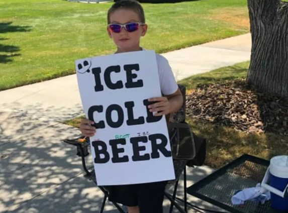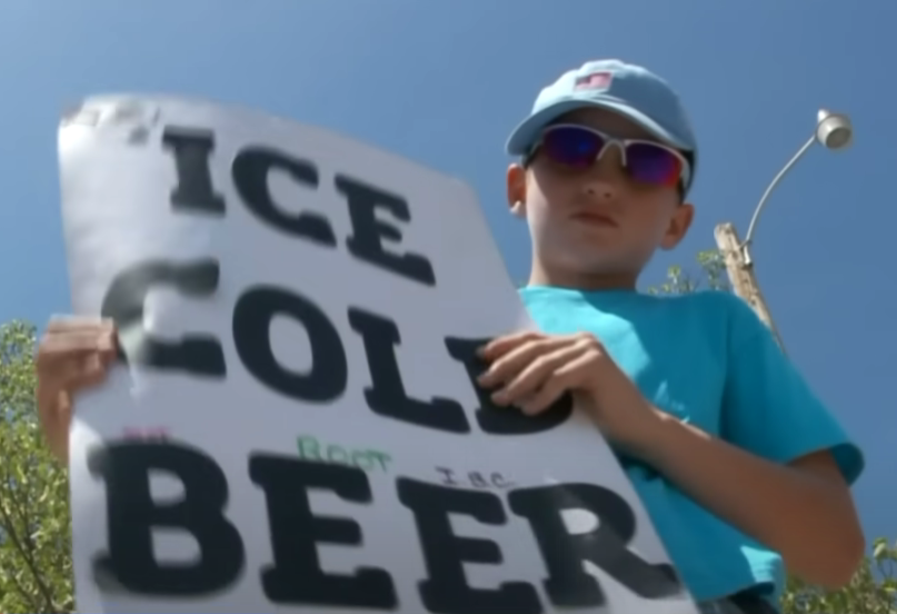 Een jongen verkoopt ‘ijskoud bier’ en blijkt een slimme marketeer te zijn.