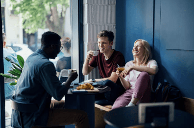 Toen ik opkeek, zag ik mijn broer Joris aan een tafel zitten met twee vrienden, ontspannen achteroverleunend alsof hij precies daar hoorde te zijn en nergens anders.