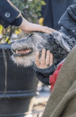 De hond had één poot minder en wist met haar charmante uitstraling vaak extra knuffels en snacks te krijgen van voorbijgangers.