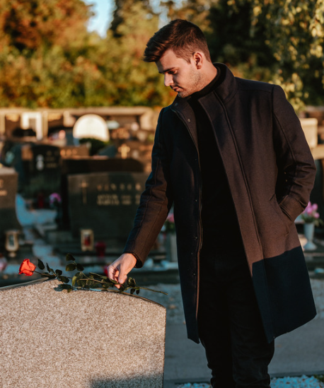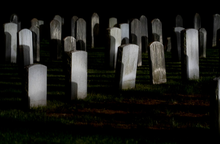Terwijl hij daar stond, in stilte en reflectie, zag de man een schim nabij het graf.