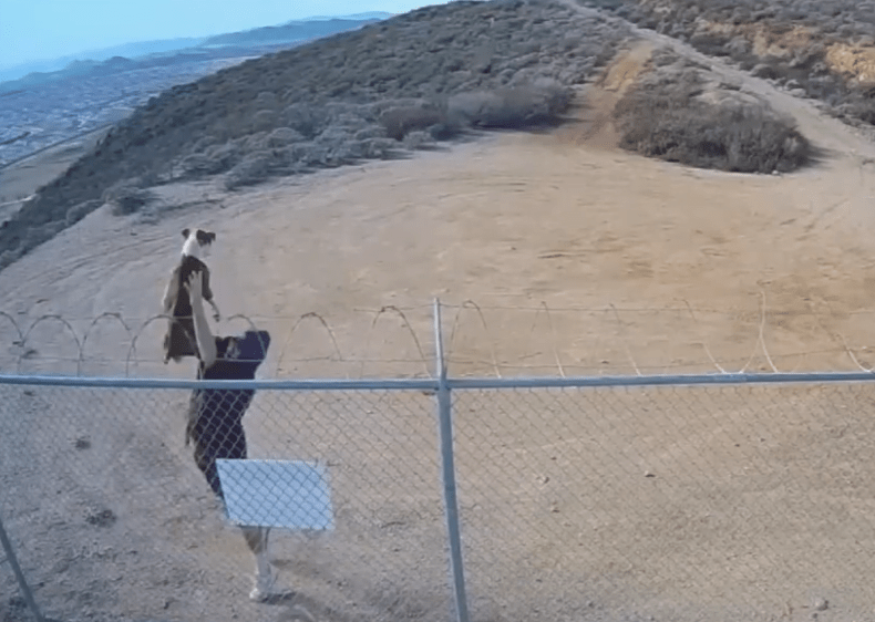Beveiligingscamera’s legden vast hoe een man de hond over een hoog hek met scheermesdraad tilde en daarna vertrok. De hond kwam binnen de omheining op de grond terecht, maar bleef volgens medewerkers gespaard van ernstige verwondingen.