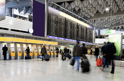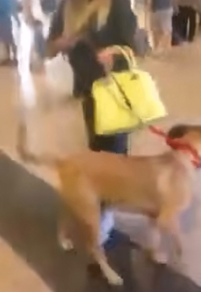 De luchthaven is een drukke plek met veel geluiden en beweging. Toch blijft de hond gefocust op de reizigers die binnenkomen.