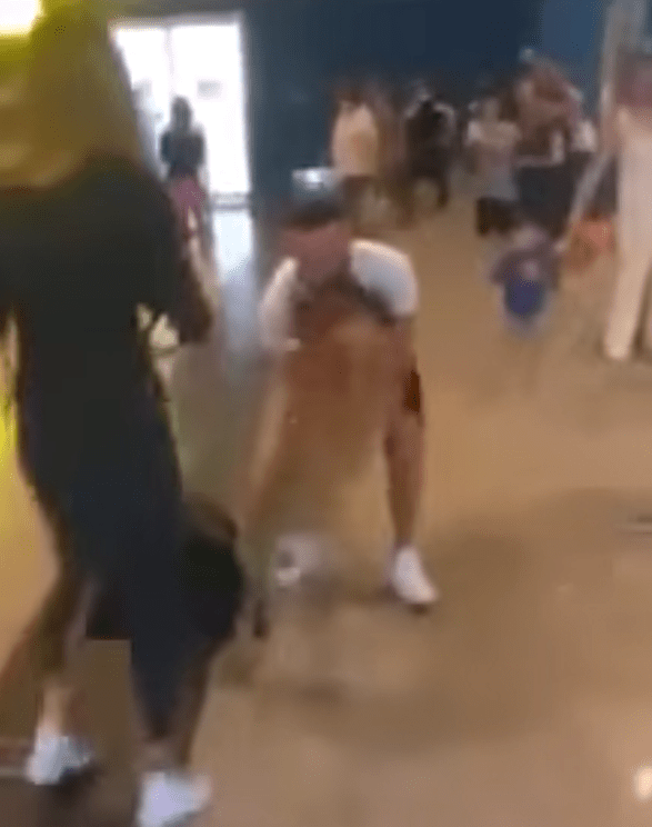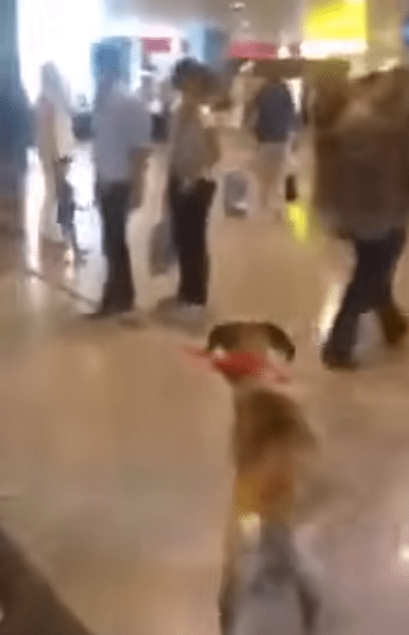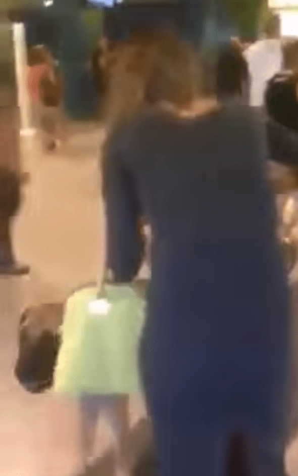 Op de beelden staat het gezin rustig te wachten bij de aankomstzone. Naast hen staat hun hond, die aandachtig naar de mensen om zich heen kijkt.