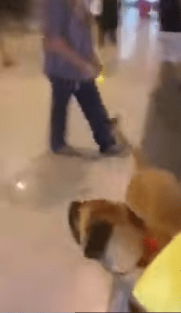 De reactie van de hond blijft niet onopgemerkt. Mensen in de buurt blijven staan en kijken naar wat er gebeurt.