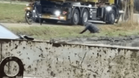 Daarna volgde een onverwachte wending. De vuilnisman pakte de fietser vast en zette hem in de nabijgelegen plomp, die direct langs de straat lag.