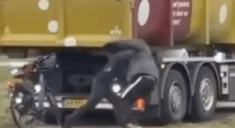 De gebeurtenis vond plaats in een smalle straat waar afval werd ingezameld. Een fietser en een vuilnisman kwamen daar tegenover elkaar te staan, terwijl omstanders nieuwsgierig toekeken.