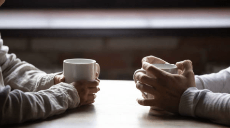 Na enkele weken spraken ze af in een café. Een neutrale plek kan helpen om rustig en open met elkaar te praten.
