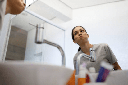 De badkamer voelde merkbaar rustiger, alsof iemand de onzichtbare spanning uit de ruimte had weggehaald en er opnieuw frisse, kalme lucht en een lichter gevoel voor in de plaats had gebracht, bijna alsof het vertrek opnieuw was ingericht.