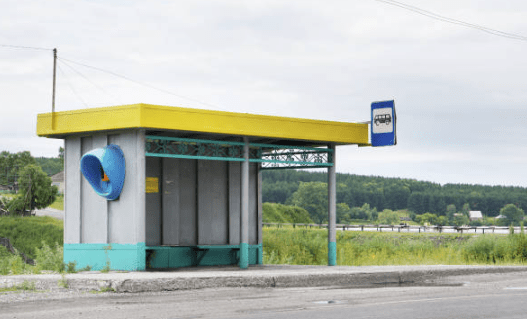 Bij de bushalte stond een oud houten bankje, met afgebladderde blauwe verf die door de jaren heen dof en broos was geworden, alsof talloze levens en verhalen er geruisloos waren langsgekomen en er onzichtbare sporen hadden achtergelaten die alleen de aandachtige kijker nog kon opmerken.