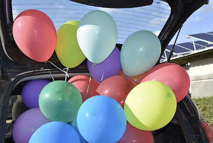 Op de passagiersstoel dansten kleurrijke ballonnen onrustig heen en weer, alsof ze zijn enthousiasme én zenuwen feilloos konden aanvoelen en zelf ook niet konden wachten op alles wat die bijzondere dag nog zou brengen, vanaf het allereerste moment.