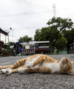 Op diezelfde bloedhete dag werd op een verlaten industrieterrein een klein katje gevonden dat stil en krachteloos op de grond lag, volledig uitgeput door de brandende zon. Het asfalt was zó heet dat zelfs mensen hun voeten er niet langer dan een seconde op konden houden zonder dat het pijn deed, waardoor de hitte ondraaglijk voelde en de omgeving een verstikkende gloed uitstraalde die alles en iedereen in zijn greep leek te houden.