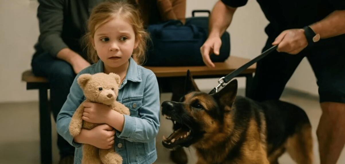 Hij begon luid te blaffen, korte, felle geluiden die door de terminal galmden alsof hij de hele ruimte wilde waarschuwen voor een gevaar dat alleen hij kon waarnemen. Elk geluid droeg urgentie en concentratie uit, en iedereen in de buurt voelde instinktief de spanning toenemen.
