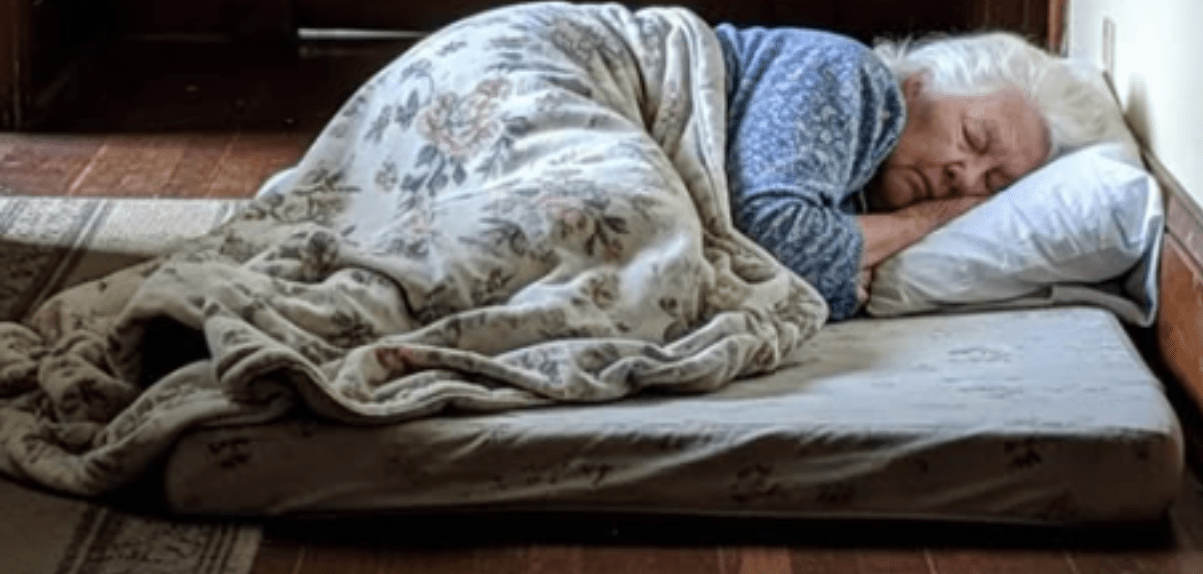 In de gang lag een dun, bijna verdroogd matras op de koude vloer uitgespreid, en daarop lag mijn moeder, opgerold onder een smal dekentje, haar schouders trillend van kou en uitputting, alsof ze elk moment kon breken onder de last van haar zware leed.