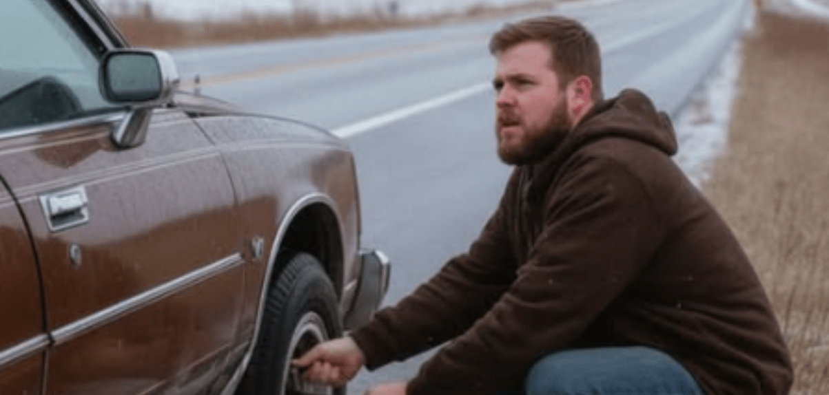 Toen ik langzaam naar hen toeliep, zag ik meteen de oorzaak van hun groeiende angst: een compleet lege rechterband, zo plat dat de velg bijna de grond raakte en het overduidelijk was dat ze al langere tijd in die ellendige staat langs de verlaten weg hadden gestaan, wanhopig wachtend op hulp.