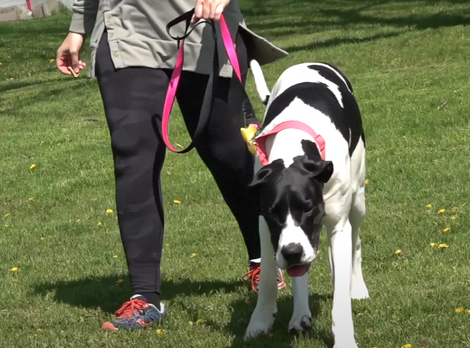 Er zijn verschillende redenen waarom een hond een geel lintje draagt, bijvoorbeeld omdat hij nog aan het herstellen is van een drukke periode of gewoon behoefte heeft aan een rustige, prikkelarme wandeling.